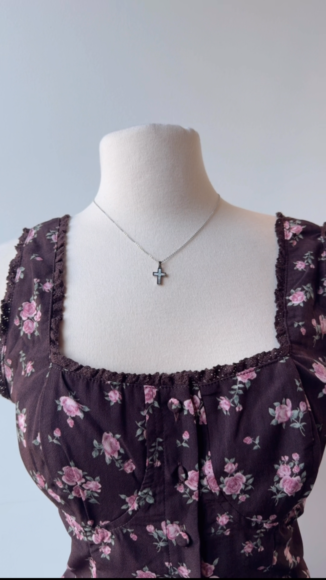 Deep chocolate brown with pink floral print